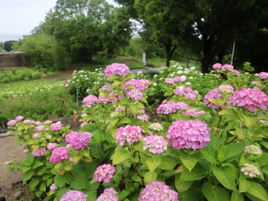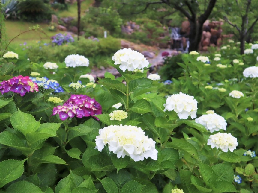 アジサイが咲き始め、花数も増えてきました。品種によってまだ咲いていない場所もありますが、これからちょっとずつ開花していきます。