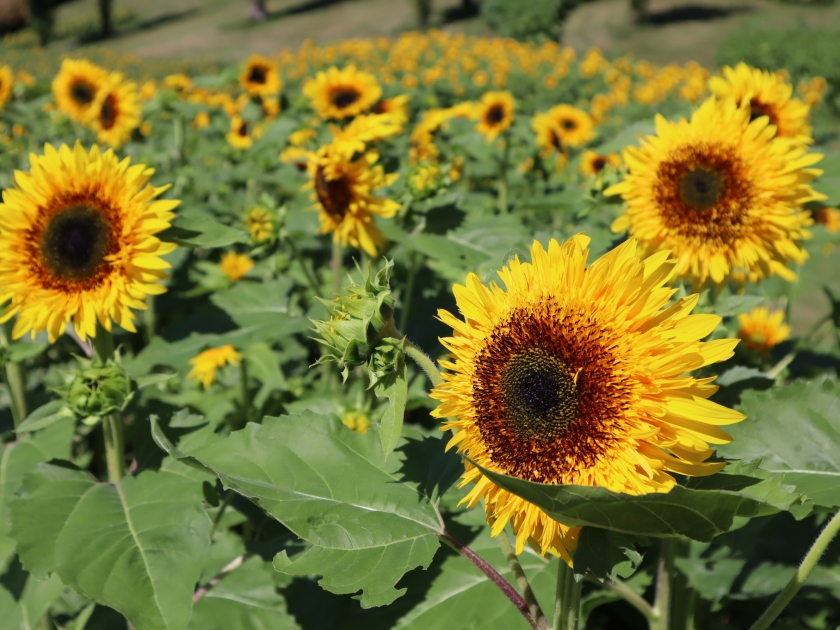 品種ごとに一気に開花してきました。8月半ばまで見ごろが続く予定です。本日のおススメはポプラの丘の‘ゴッホのひまわり’です。