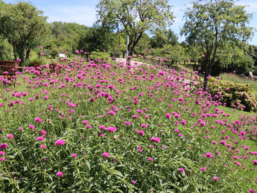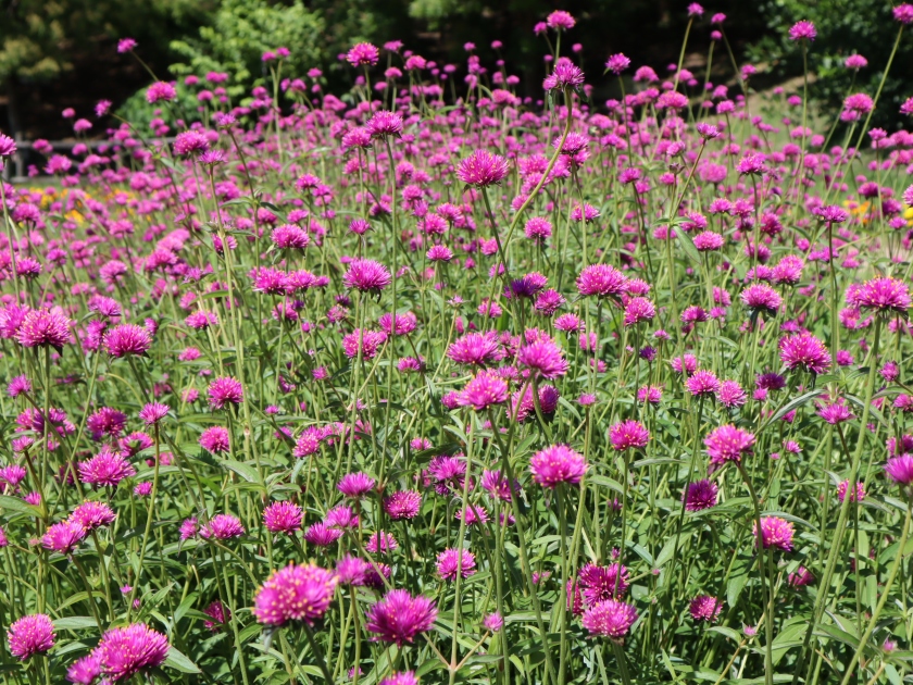 写真一・二枚目:センニチコウ‘ファイヤーワークス’(場所:レストラン花屋敷前、移ろいの庭階段花壇)