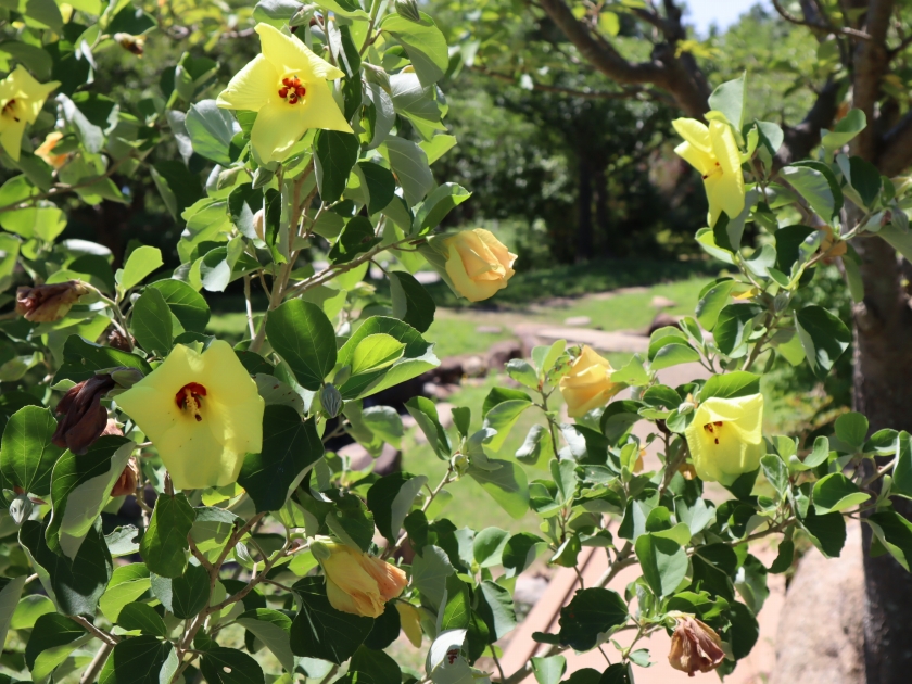 写真一・二枚目:ハマボウ(浜朴/黄槿)(場所:花の谷)
