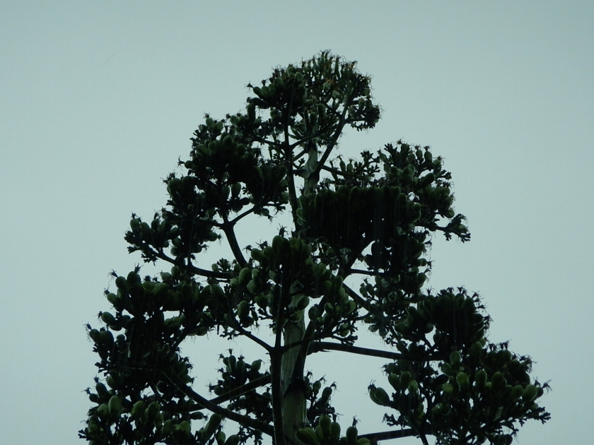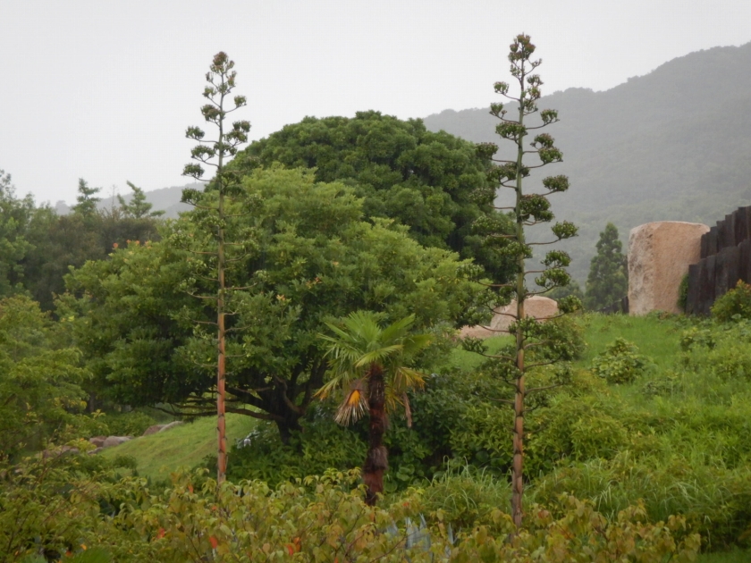 先週の台風9号で軒並み他の施設のアオノリュウゼツランが倒れたとの情報を入手しましたが、当公園の3本はとりあえず元気です。ど根性リュウゼツランか?!