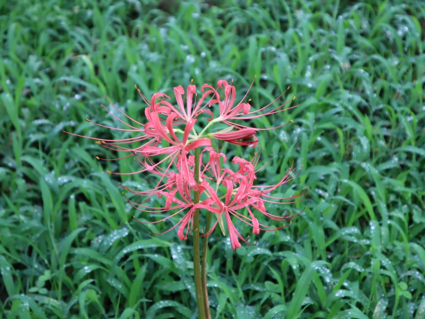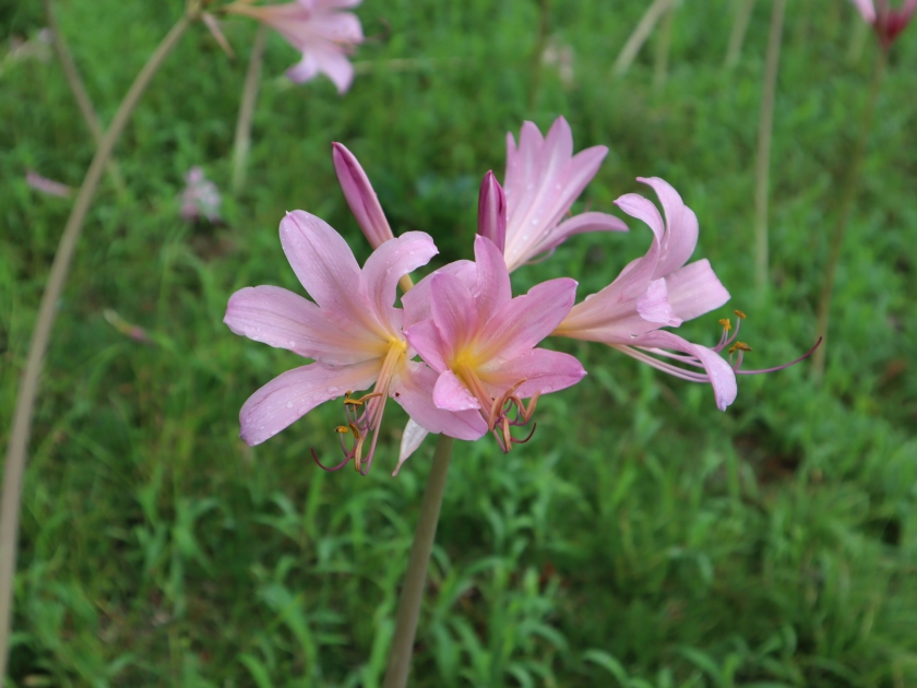 和名は夏水仙。茎と花だけ出現し、葉っぱは別の時期に出ます。