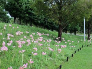 写真一・二枚目:リコリス・スクアミゲラ(場所:陽だまりの丘とパームガーデンの間)