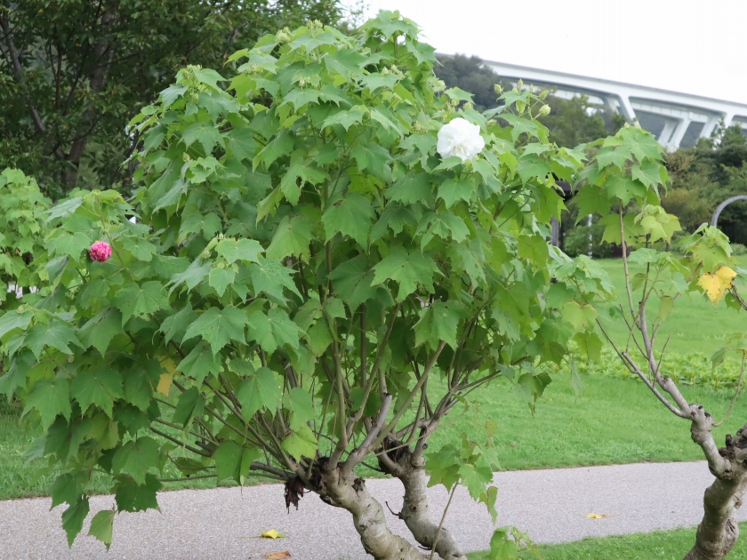 写真一・二枚目:スイフヨウ(酔芙蓉)(場所:ポプラの丘)