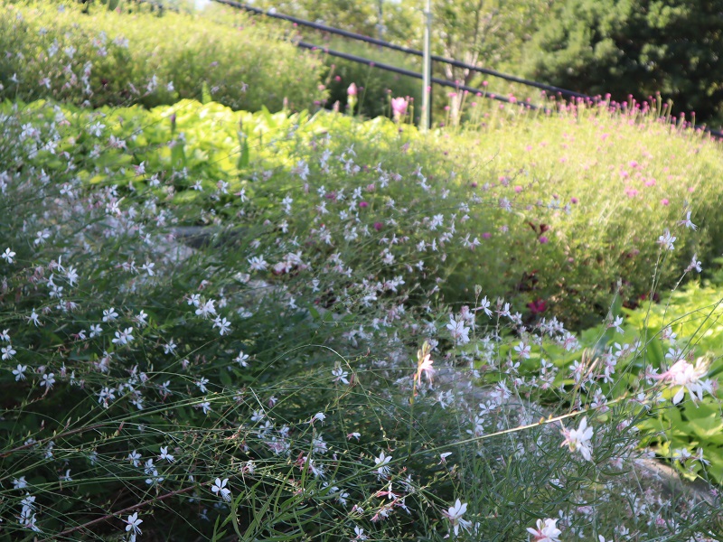 写真一・二枚目:ガウラ(白蝶草/山桃草)(場所:移ろいの庭階段花壇ほか)