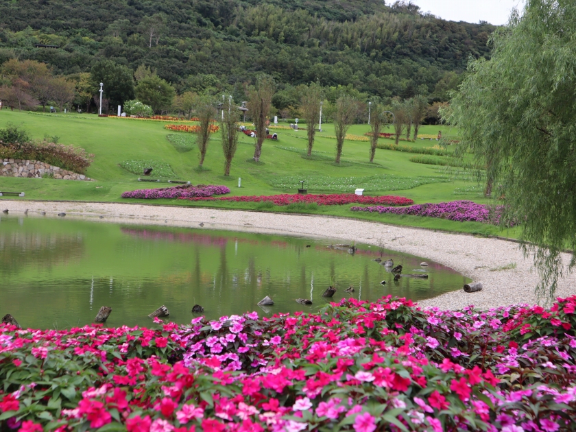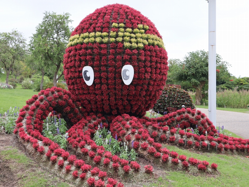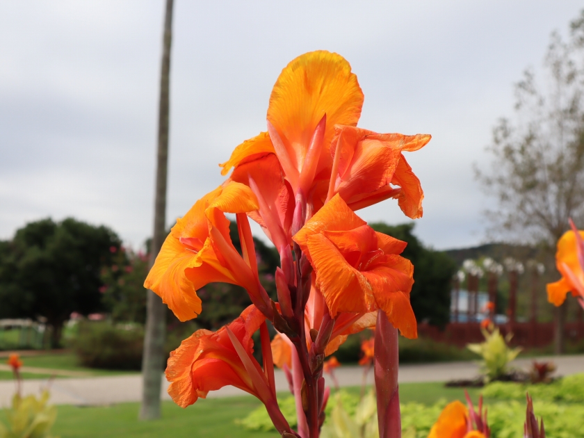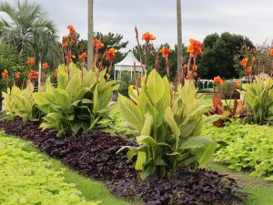 写真一・二枚目:イポメア、三枚目:カンナ(場所:パームガーデン)、四枚目:パームガーデンの様子