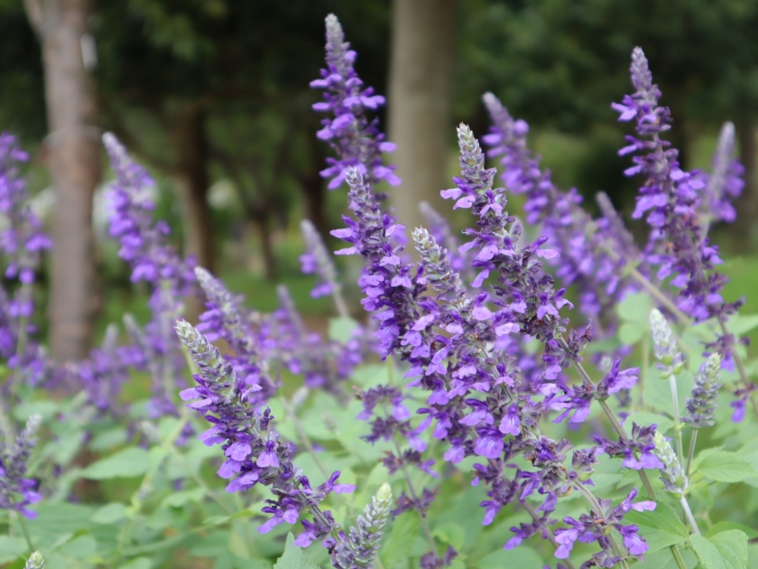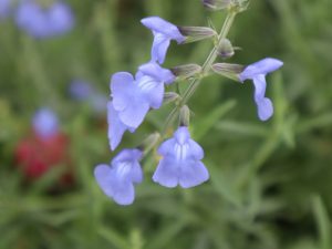 写真一・二枚目:サルビア・レウカンサ、三枚目:サルビア「インディゴスパイアー」、四枚目:サルビア・アズレア(場所:花の丘道