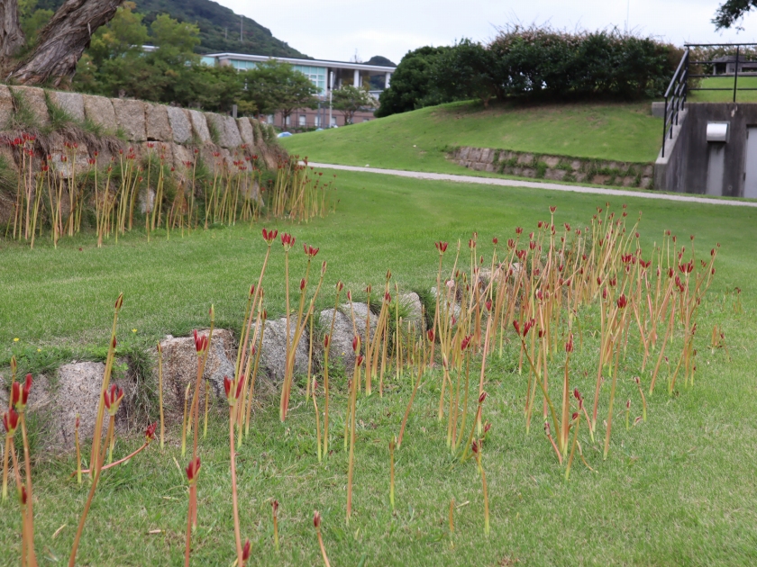 移ろいの庭の一角でもヒガンバナがもうすぐまとまって咲きそうです。あと数日でしょうか。