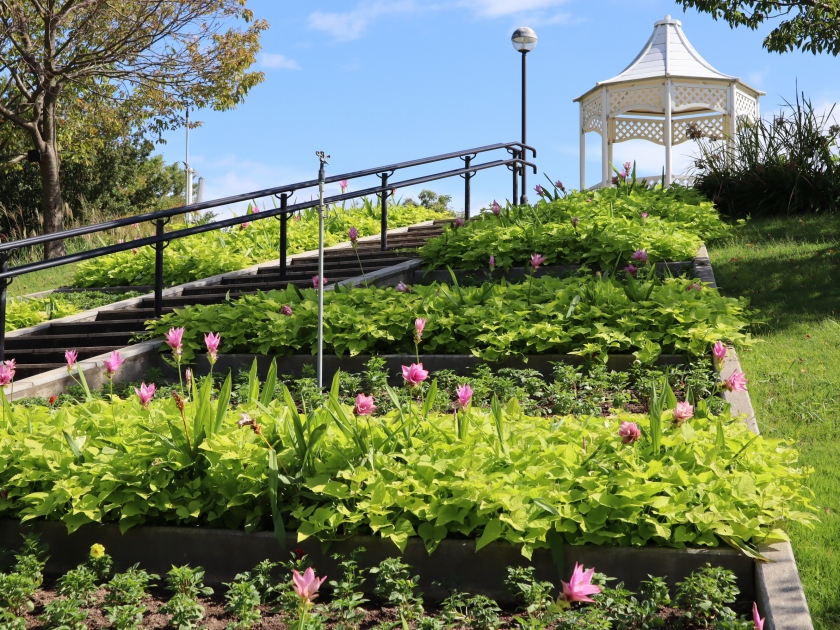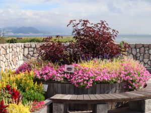 海のテラスの花壇にいろいろな植物を盛り込んでいます。海を見るついでに、モリモリ咲いているお花も是非見ていってくださいね!