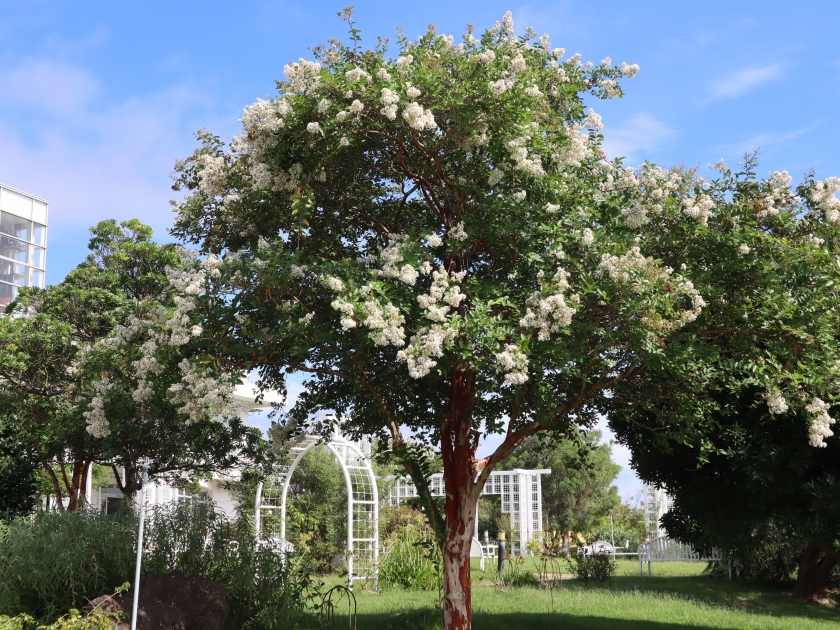 写真一・二枚目:サルスベリ(百日紅)(場所:移ろいの庭、花の谷、子供の森ほか