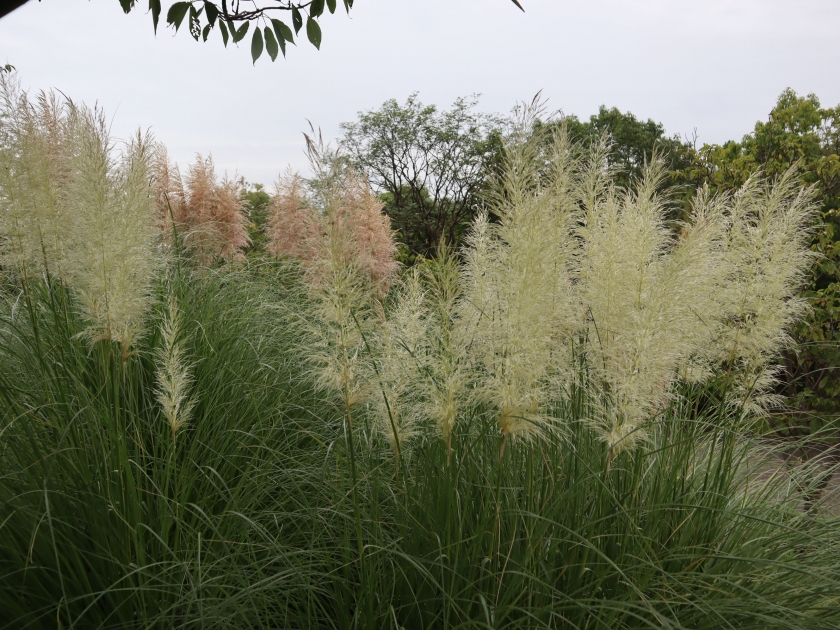 写真一枚目:パンパスグラス、二枚目:ススキ(場所:移ろいの庭)