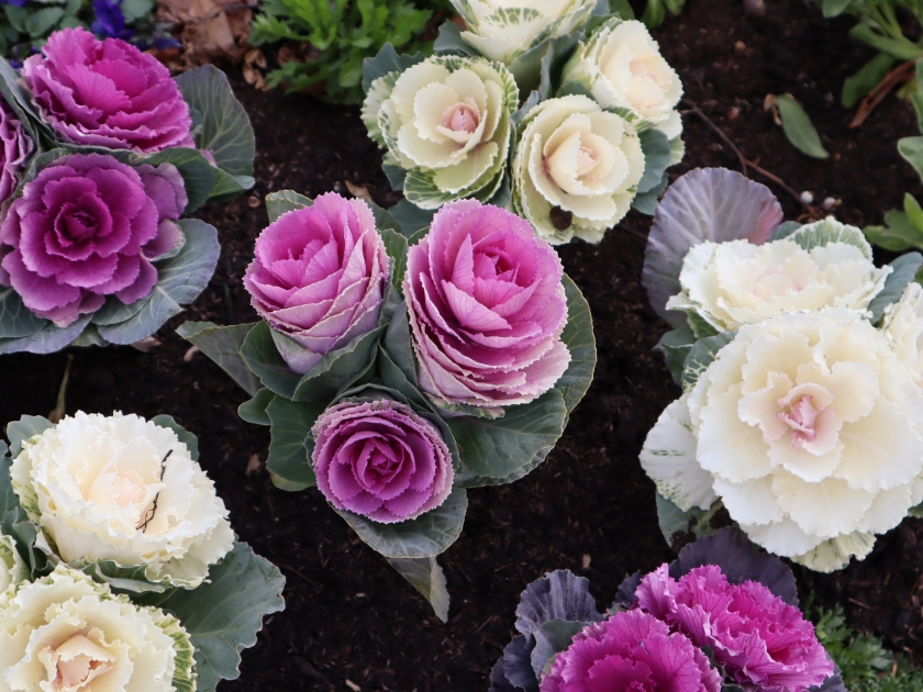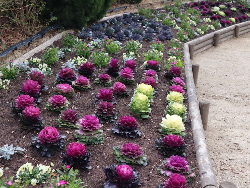 写真一・二枚目:ハボタン(場所:花の丘道 半円形花壇