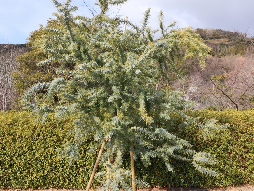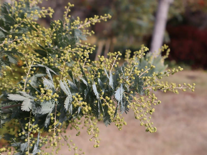 写真一・二枚目:ギンヨウアカシアのつぼみ(未開花です)(場所:月のテラスのそば