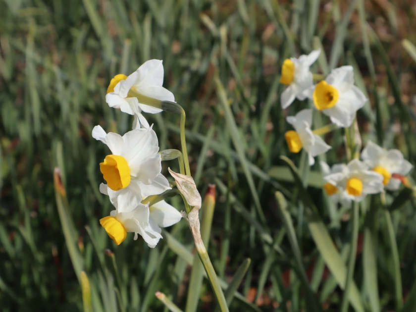 ニホンズイセンが咲き始めています。開花数は先週より増えましたが、まだ少ないです。