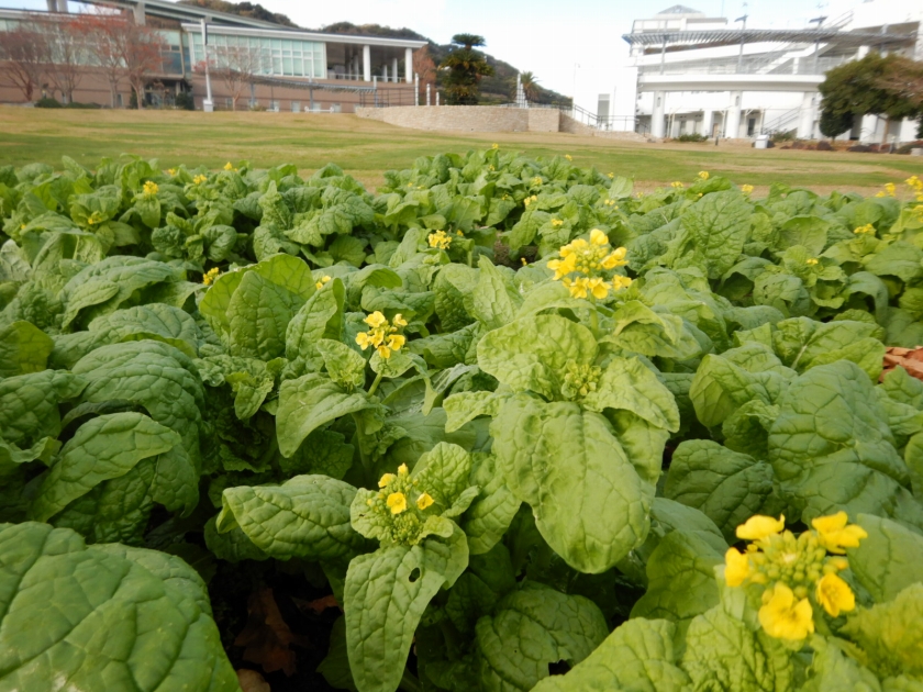 ナノハナが順調に育っています。ちらほら花が咲き始めましたが見ごろは1月になると思います。
