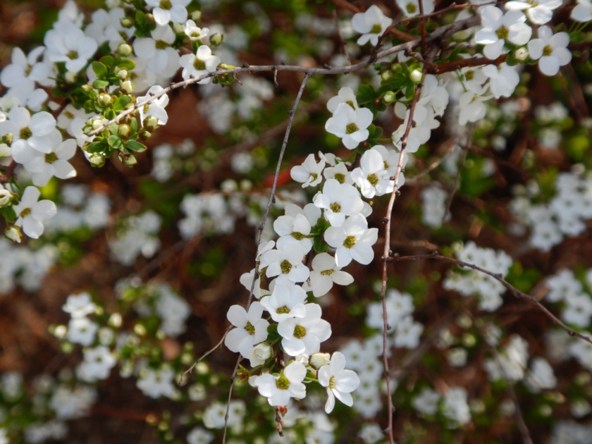 写真一・二枚目:ユキヤナギ(場所:花の谷ほか園内各所)