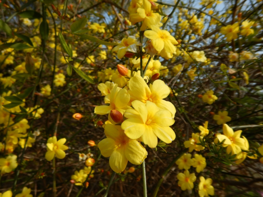 セイヨウスイセンが着々と開花中。主には移ろいの庭と陽だまりの丘で群生していますが、園内のチョコッとしたところに咲いていたりします。