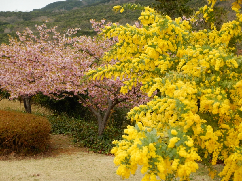 写真一・二枚目:寒緋桜(カンヒザクラ)(場所:花の丘道(クリスマスローズガーデン))
