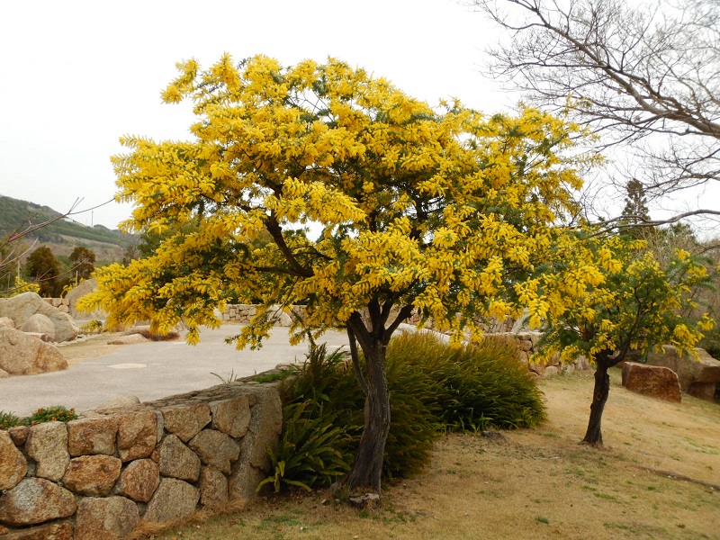 月のテラス周辺のギンヨウアカシアがとうとう見ごろとなりました!昨年より3週遅れで、開花せずに終わるのではと心配させておきながら、しれっとフッサフサ、モッフモフになりました!是非見てください。