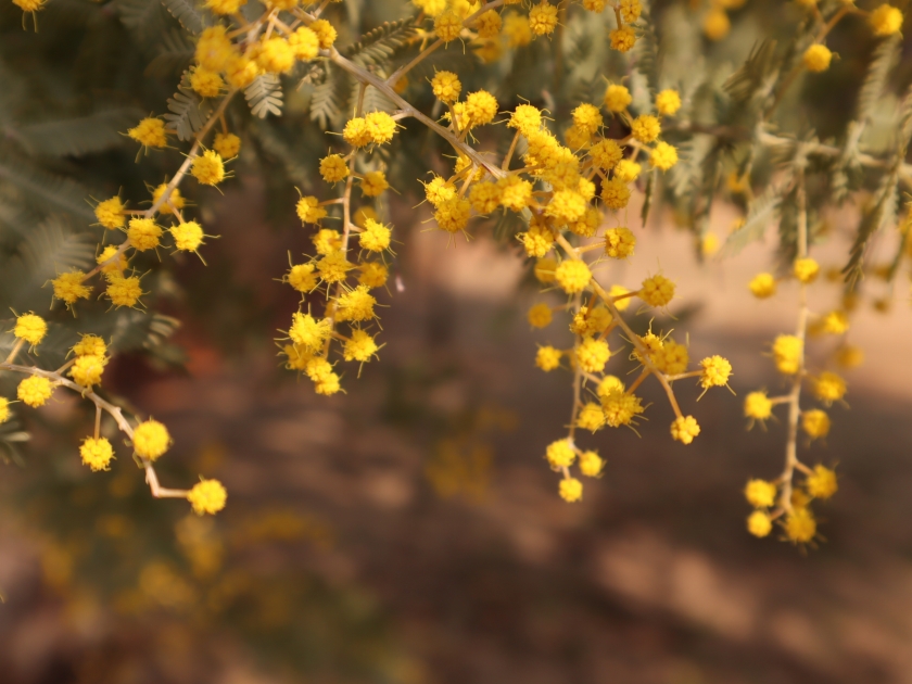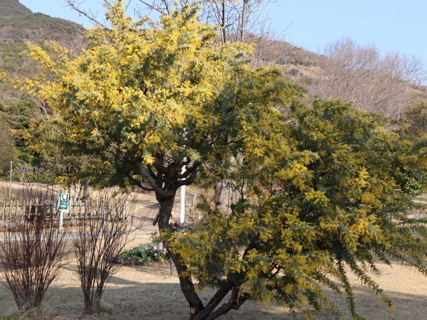・ギンヨウアカシア(ミモザアカシア)がようやく咲き始めました(昨年より3週遅れ)。