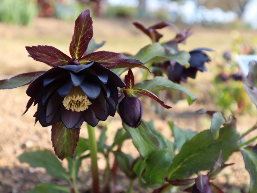 写真一枚目:品種「ブラックスワン」、二枚目:品種「ピンクラッフル」