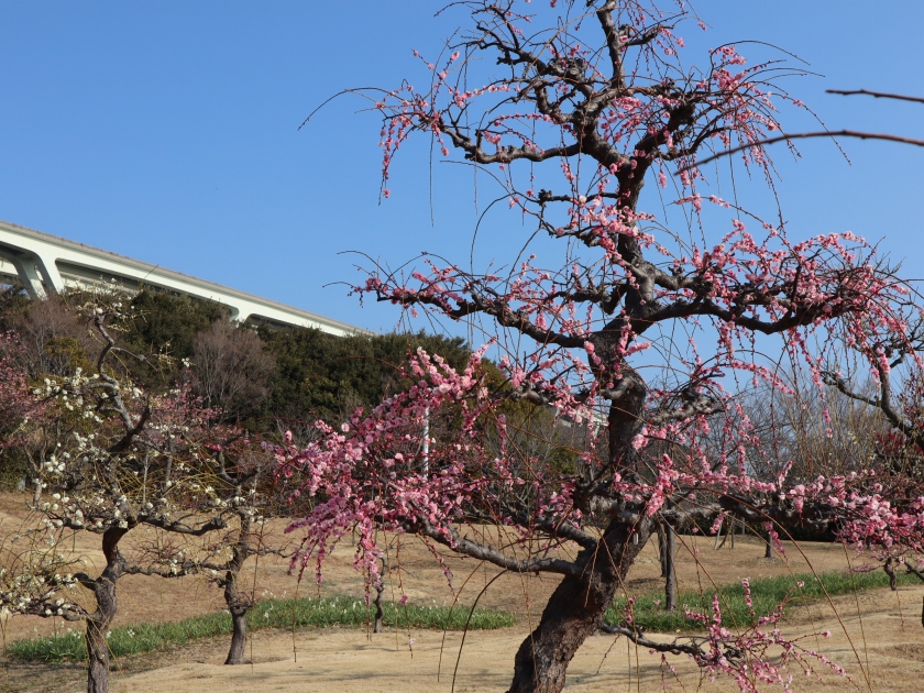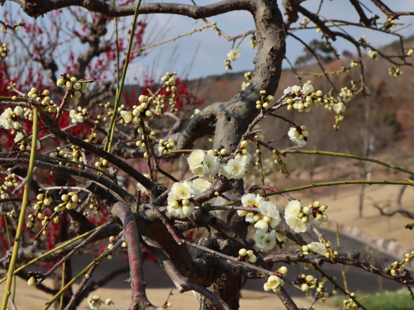 ウメは春一番の丘に12本しかありませんが、そのうち5本がきれいに咲いています。