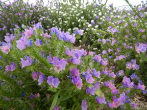 透明感のあるお花、エキウム。繊細そうに見えて葉や茎の細かいトゲが戦闘的。刺さるとマジ痛い。