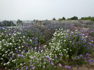 風に揺れる姿が飛び回る蝶のような花。人は少なく、晴れの日は海も見えて、写真撮影にはいい場所です。