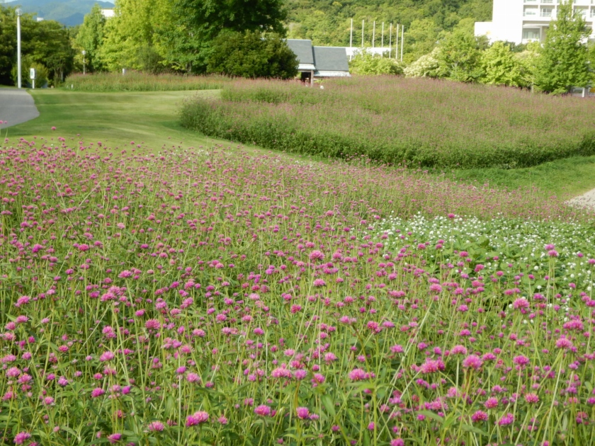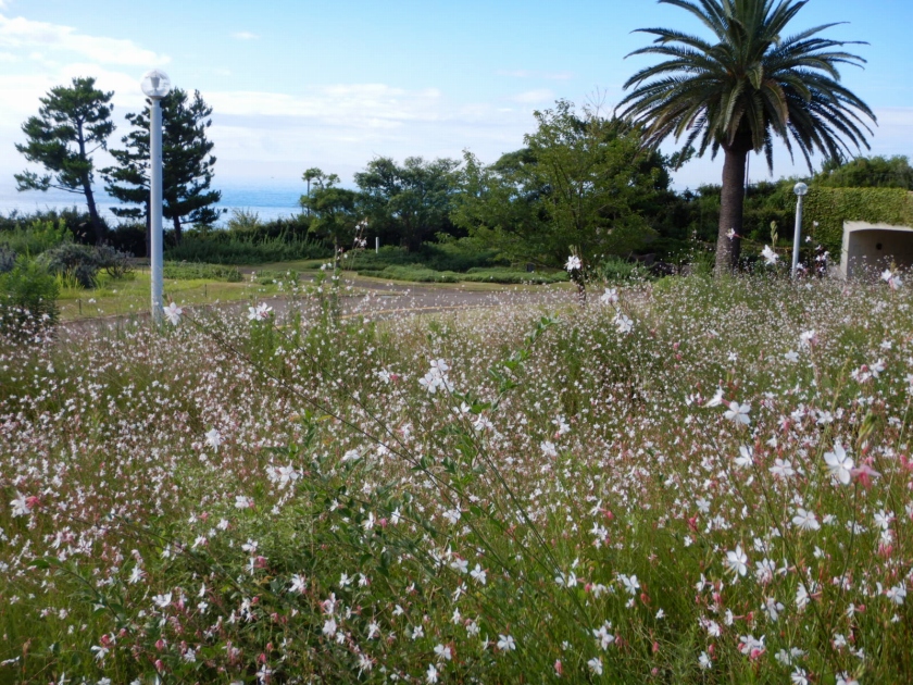 ホワホワ~ッといっぱい咲いています。花の背景になっているここから眺める海がきれいですよ。