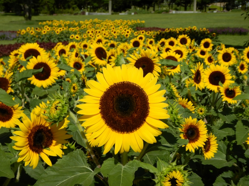 ポプラの丘では絵画シリーズが咲いています。「モネのひまわり」「マティスのひまわり」が見ごろ、「ゴッホのひまわり」はピークを過ぎた感じで、落ち武者っぽい見た目の花が増えてきました。これはこれである意味かわいい。