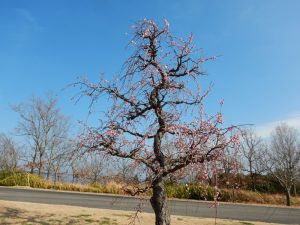 春一番の丘にたった2本だけしかありませんが見ごろです。