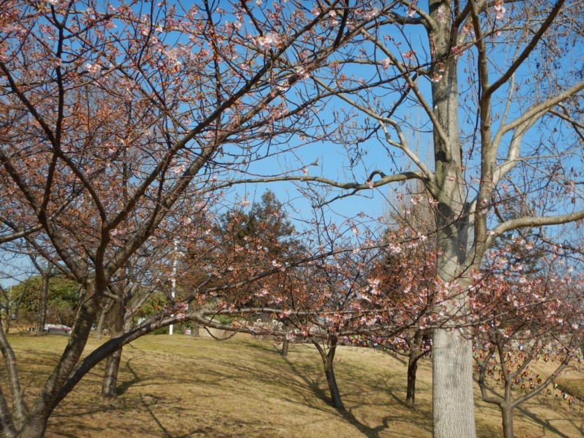 メインの場所である春一番の丘の木々は、つぼみが膨らんできているものの、次の暖かい日が来ないとまだ咲かないかなぁといった感じです(写真一・二枚目)。