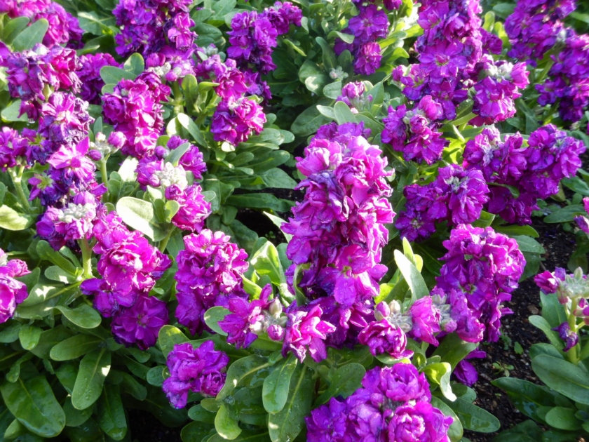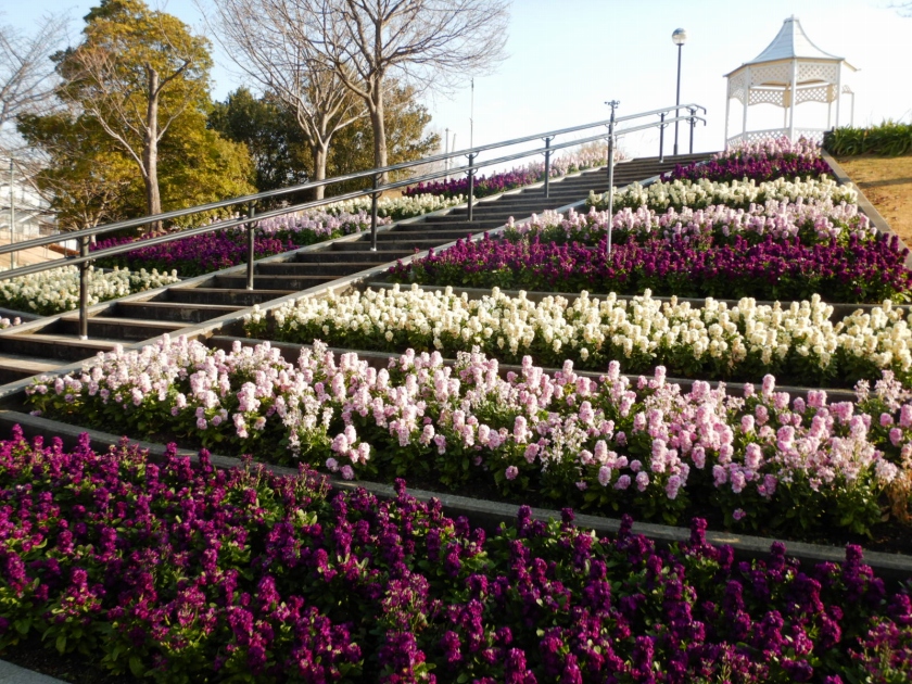花の少ない冬でも花壇に彩りを与えてくれるたのもしいストックです。花数が増えてモコモコです。淡路口ゲート前などでも咲いています。