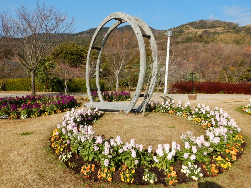 写真一・二枚目:移ろいの庭階段花壇、三枚目:ポプラの丘 フォトリング花壇、四枚目:淡路口ゲート前