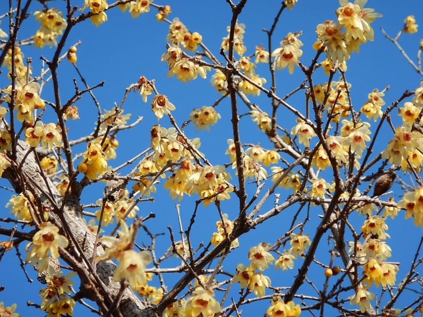 花の谷にはきれいに咲く木が去年まで3本あり、お写真を撮られる方に大人気でした。しかし悲しいことに2本が無くなり、今年は1本のみ(写真1・2枚目)。花の丘道沿いは多分10本くらいあるのですが、観賞に耐えられそうな木は3本くらい。わかりやすいのはクリスマスローズガーデンにある1本です(写真3・4枚目)。近くに寄るととってもいい香りがします。
