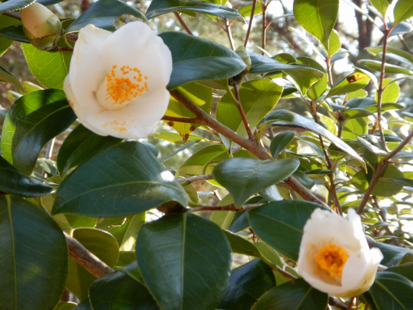 ツバキ類(場所:花の谷の園路沿い(ワビスケ、ヤブツバキほか)、ボート乗り場そばほか(カンツバキ))