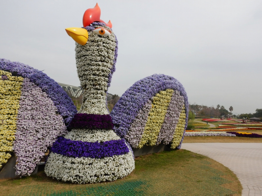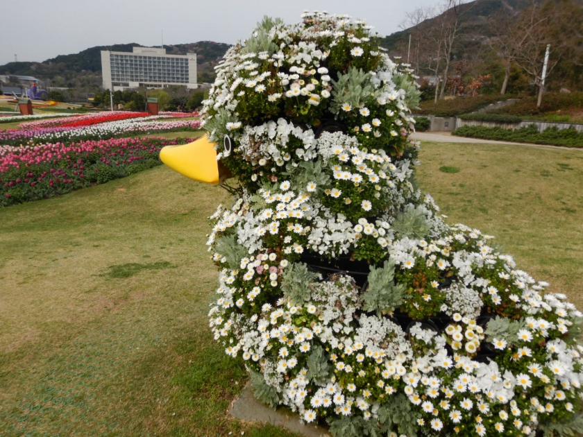 ビオラが主体の立体花壇。一番大きい「花火鳥」は高さ4メートル、幅30メートル。ここまで立派な常設の立体花壇は日本では多分ここ以外にありませんので、是非ご覧下さい。他のもかわいいですよ。