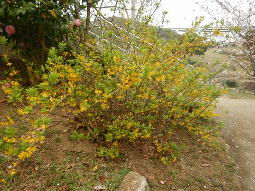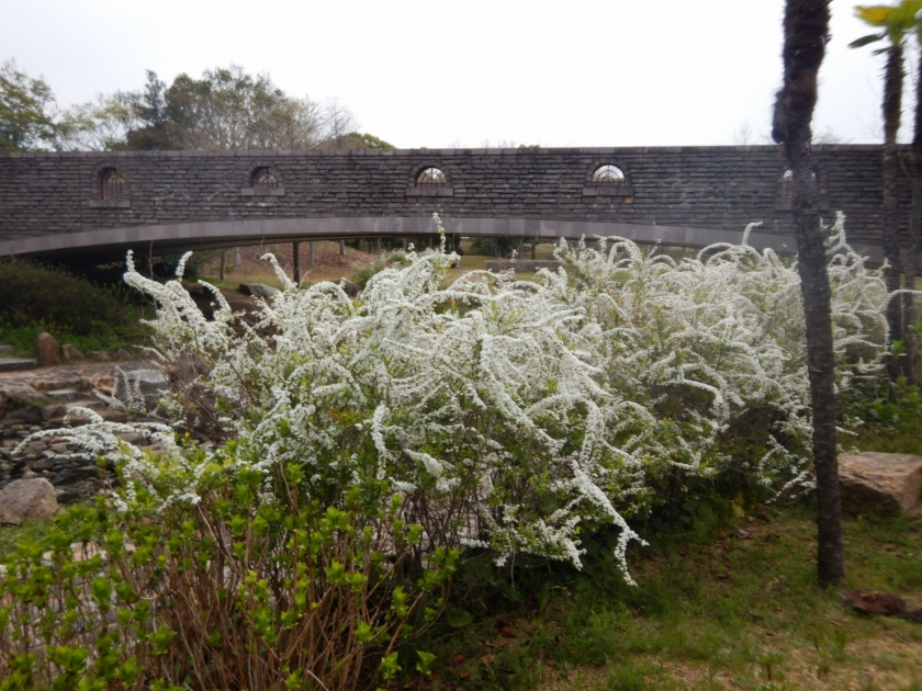 園内を白く彩るユキヤナギ。ピークを過ぎましたが、まだきれいに咲いている箇所もあります。