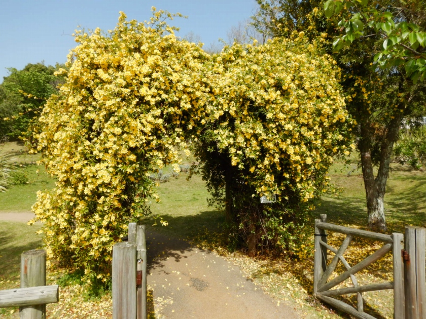 アーチ状の黄色いモジャモジャ。花期が短く、結構すぐに散っちゃいます。
