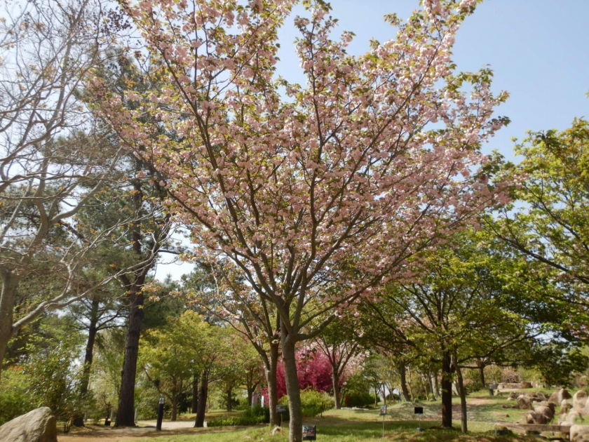 園内には約300種、約800本のサクラがあり、4月下旬頃まで順番に咲いていきますので、その時期ごとの桜をお楽しみください。 それぞれ本数は少ないのですがきれいに咲いておりますので、園内を散策していただけたらと思います。 以下に今のおすすめのうちから2品種をご紹介します。