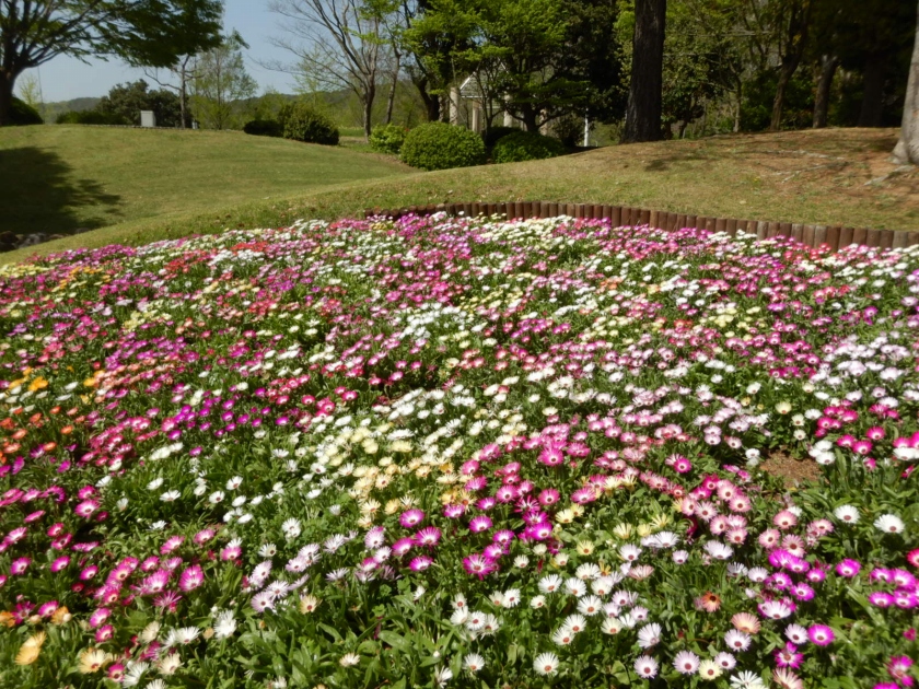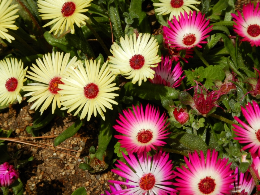 太陽の光を浴びると開花するリビングストンデージーが見ごろとなってきています(もう少し株は成長します)。 が! 天気がイマイチな日は開花しないので、曇りの日に来られた方は見られない可能性も。