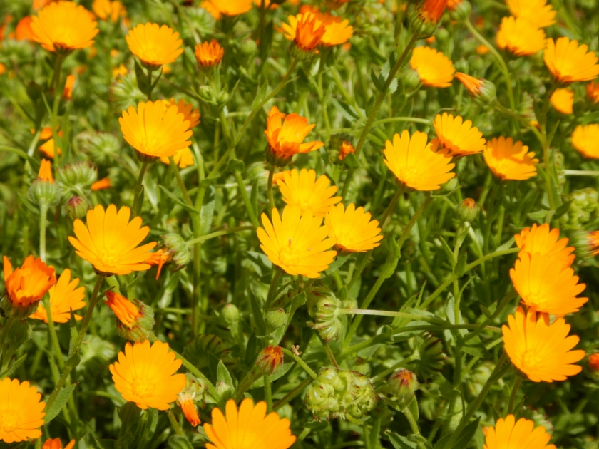 移ろいの庭のお花の形の花壇が、キンセンカで埋まってきました!