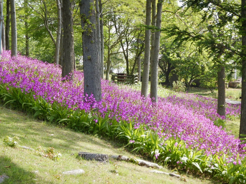 紫色の花が群生しています。この写真では伝えられないくらい、赤紫色がとってもきれいなんですよ。