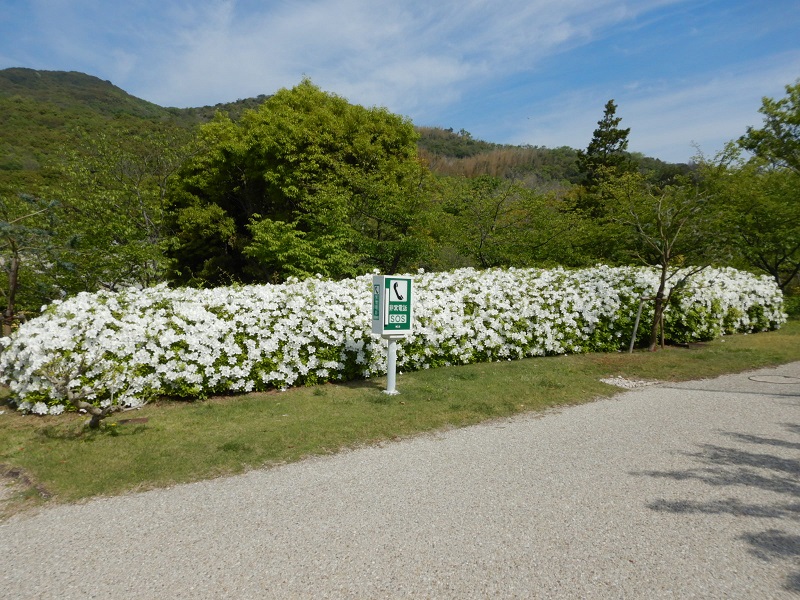 淡路口駐車場から入園しようとすると、山のようなツツジ軍団が見られます。GWが一番見ごろで、ピンクに染まった山が見られるでしょう。でも個人的にお気に入りのツツジは、ポプラの丘の上の方に見られる白ツツジの一列。なかなか白一色のかたまりって見ない気がします。
