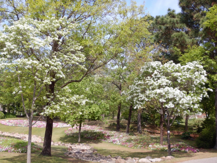 ◆ヒトツバタゴ(ナンジャモンジャノキ):見ごろ  場所:陽だまりの丘、花の谷、移ろいの庭ほか