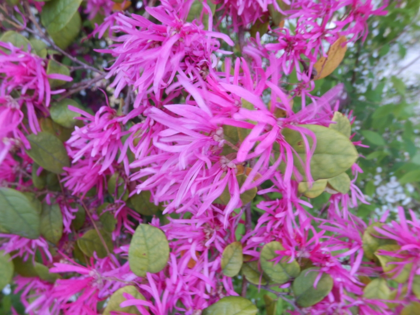 全体が赤い木、それがこの木です。今日の強風で花びらヒラヒラ飛び散っていました。