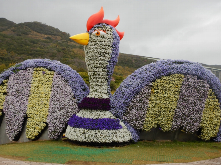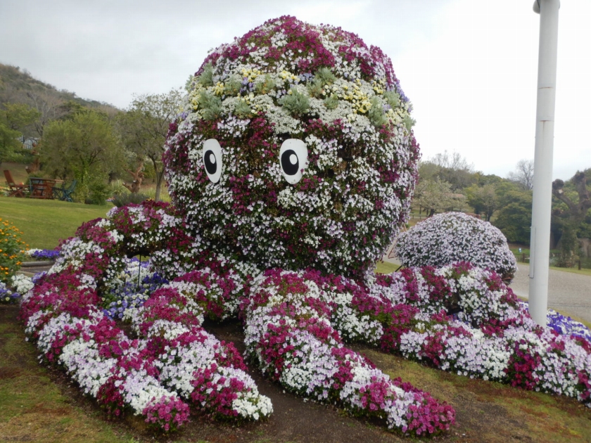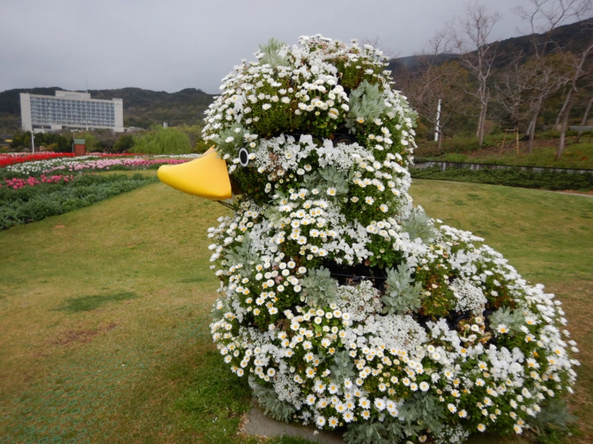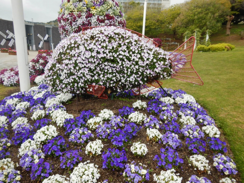 ビオラが主体の立体花壇。一番大きい「花火鳥」は高さ4メートル、幅30メートル。ここまで立派な常設の立体花壇は日本では多分ここ以外にありませんので、是非ご覧下さい。他のもかわいいですよ。