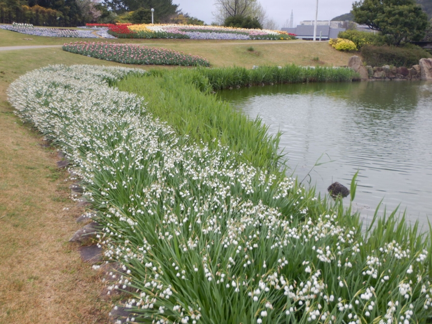鈴のようなかわいらしい花が、花の中海周辺、水の棚田周辺で咲いています。大地の虹南花壇のチューリップを見るついでに一緒にどうぞ。