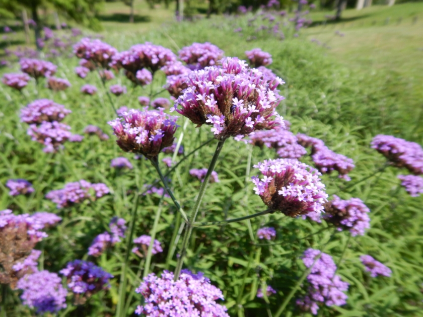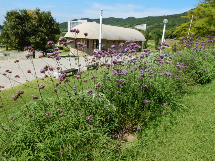秋には紫のサルビアの花がたくさん咲く場所で、この時期は紫の三尺バーベナがチョコッと咲いています。
