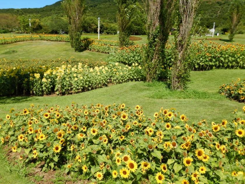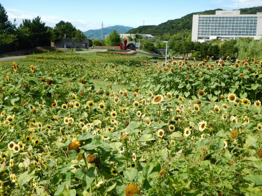 ポプラの丘も終盤ですが、大地の虹北花壇よりも多少状態がいいです。開花が遅れていた品種(モネのひまわり:写真六枚目)が色鮮やかです。